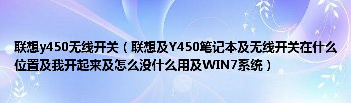 1,联想 Y450笔记本 无线开关在什么位置 我开起来 怎么没什么用 WIN7系统:前面有一个,就是拨的,然后FN+F5也有一个软开关,都打开就行了