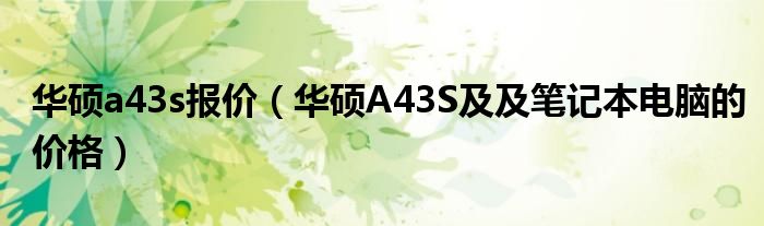 尊敬的华硕用户,您好!根据您的描述,建议您参考以下信息:1,A43S已不再生产了,如果需要购买机器,可以参考最新的A45,A46,X450系列。华硕笔记本产品的列表,您可以参阅:http://www.asus.com.cn/Notebooks/AllProducts/下面的链接是华硕官网报价表,您可以参考:http://www.asus.com.cn/Static_WebPage/NB_Pricelist/实际价格会因地区,经销商,销售渠道不同有一定的差异,建议可以咨询好综合考量选择。