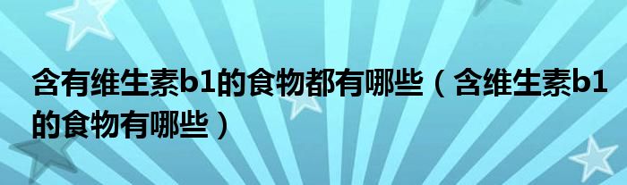 大家好,linda来为大家解答以上的问题。含有维生素b1的食物都有哪些,含维生素b1的食物有哪些很多人还不知道,现在让我们一起来看看吧!