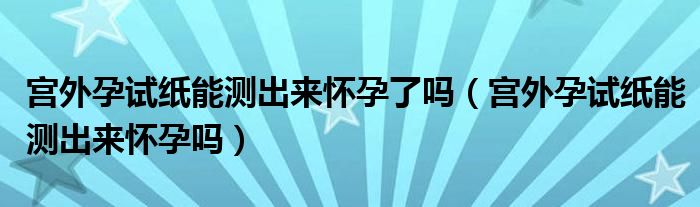 1、宫外孕试纸能测出来怀孕吗?这是两层意思。