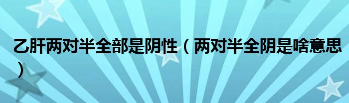 大家好,linda来为大家解答以上的问题。乙肝两对半全部是阴性,两对半全阴是啥意思很多人还不知道,现在让我们一起来看看吧!