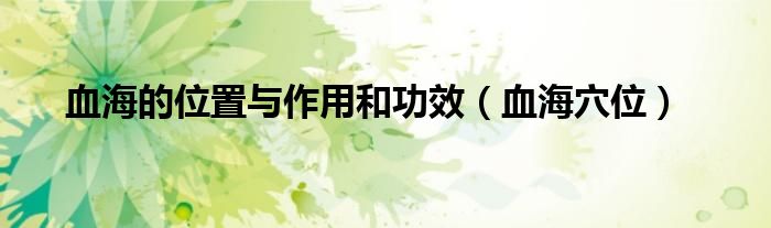 大家好,linda来为大家解答以上的问题。血海的位置与作用和功效,血海穴位很多人还不知道,现在让我们一起来看看吧!