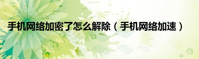 大家好,雨雨来为大家解答以上问题,手机网络加密了怎么解除,手机网络加速很多人还不知道,现在让我们一起来看看吧!
