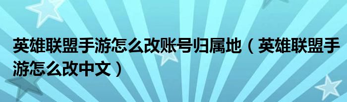 大家好,雨雨来为大家解答以上问题,英雄联盟手游怎么改账号归属地,英雄联盟手游怎么改中文很多人还不知道,现在让我们一起来看看吧!