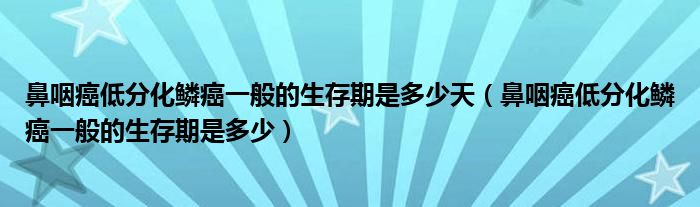 大家好,linda来为大家解答以上的问题。鼻咽癌低分化鳞癌一般的生存期是多少天,鼻咽癌低分化鳞癌一般的生存期是多少很多人还不知道,现在让我们一起来看看吧!