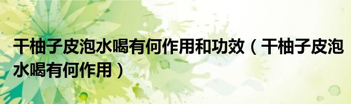 大家好,linda来为大家解答以上的问题。干柚子皮泡水喝有何作用和功效,干柚子皮泡水喝有何作用很多人还不知道,现在让我们一起来看看吧!