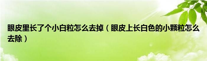 大家好,linda来为大家解答以上的问题。眼皮里长了个小白粒怎么去掉,眼皮上长白色的小颗粒怎么去除很多人还不知道,现在让我们一起来看看吧!