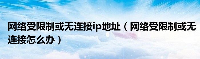 大家好,雨雨来为大家解答以上问题,网络受限制或无连接ip地址,网络受限制或无连接怎么办很多人还不知道,现在让我们一起来看看吧!