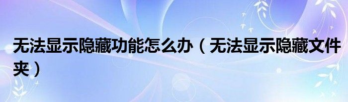 大家好,雨雨来为大家解答以上问题,无法显示隐藏功能怎么办,无法显示隐藏文件夹很多人还不知道,现在让我们一起来看看吧!