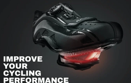 “ZENsystemSLIP是一种特殊的楔形插入物,位于公路自行车鞋底和防滑钉之间,无需额外的努力即可真正提升动力。ZENsystemSLIP设计增加了踏板轴与鞋底之间的距离。它以几何方式向前移动踏板平面的倾斜度。当踏板行程在下死点附近时,这优化了腿和脚的推力轨迹。同时,它减少了膝盖骨的压缩,这极大地影响了踏板行程的机械效率”