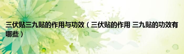 三伏贴三九贴的作用与功效(三伏贴的作用 三九贴的功效有哪些)