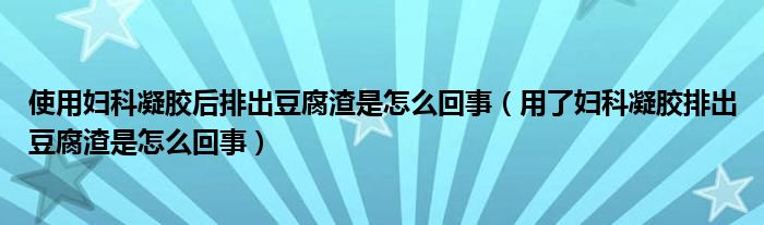 1、病情分析:妇科凝胶是用来排出豆腐渣样分泌物的,因为药物作用后凝胶变成渣滓,与白带等分泌物混合会变成豆腐渣样。