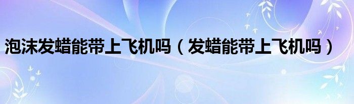 泡沫发蜡能带上飞机吗(发蜡能带上飞机吗)
