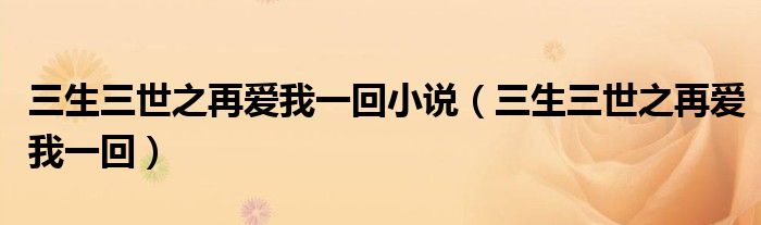大家好,小晋来为大家解答以下问题,关于三生三世之再爱我一回小说,三生三世之再爱我一回很多人还不知道,今天让我们一起来看看吧!