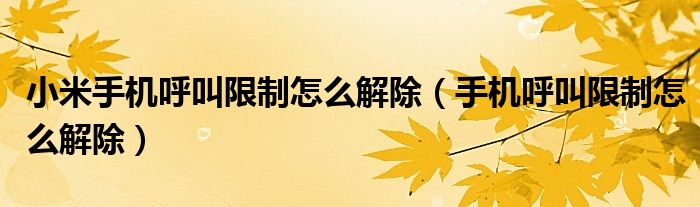 小米手机呼叫限制怎么解除(手机呼叫限制怎么解除)