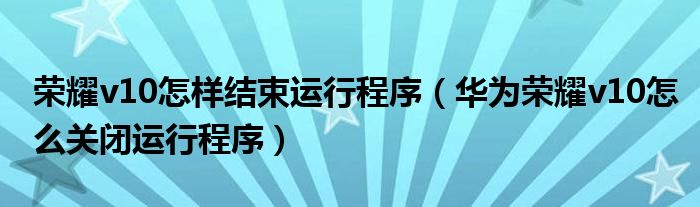 大家好,小晋来为大家解答以下问题,关于荣耀v10怎样结束运行程序,华为荣耀v10怎么关闭运行程序很多人还不知道,今天让我们一起来看看吧!
