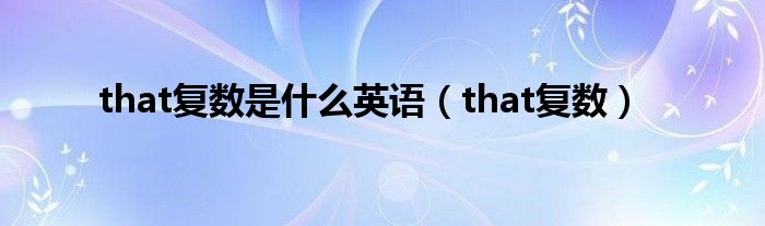 that复数是什么英语(that复数)