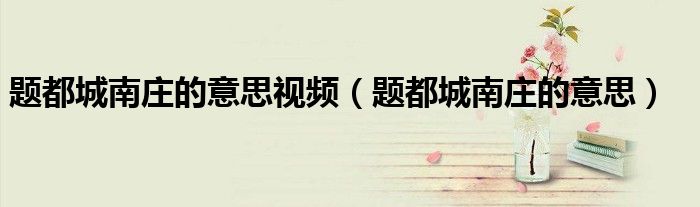 大家好,小晋来为大家解答以下问题,关于题都城南庄的意思视频,题都城南庄的意思很多人还不知道,今天让我们一起来看看吧!