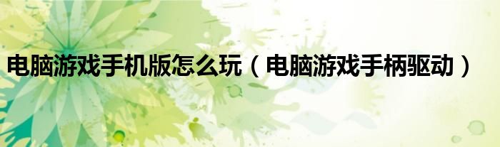 电脑游戏手机版怎么玩,电脑游戏手柄驱动很多人还不知道,乐乐来为大家解答以上问题,现在让我们一起来看看吧!