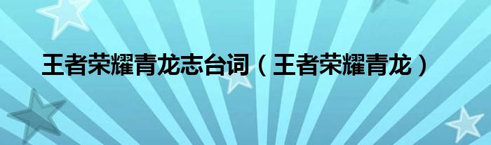 王者荣耀青龙志台词,王者荣耀青龙很多人还不知道,乐乐来为大家解答以上问题,现在让我们一起来看看吧!
