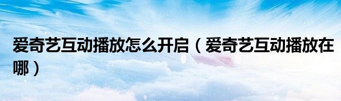 大家好,跳跳为你解答以上问题。爱奇艺互动播放怎么开启,爱奇艺互动播放在哪这个问题很多人还不知道,现在让我们一起来看看吧!