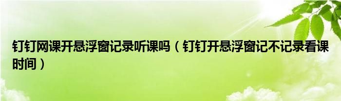 大家好,跳跳为你解答以上问题。钉钉网课开悬浮窗记录听课吗,钉钉开悬浮窗记不记录看课时间这个问题很多人还不知道,现在让我们一起来看看吧!