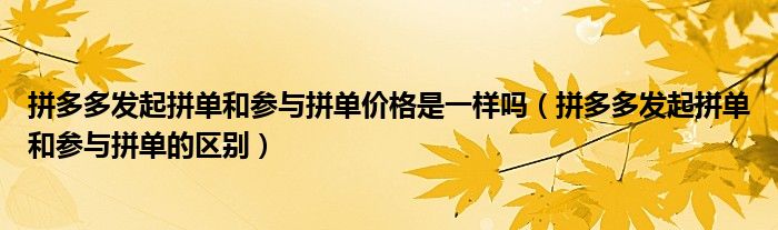 大家好,跳跳为你解答以上问题。拼多多发起拼单和参与拼单价格是一样吗,拼多多发起拼单和参与拼单的区别这个问题很多人还不知道,现在让我们一起来看看吧!