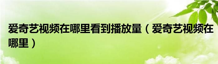 大家好,跳跳为你解答以上问题。爱奇艺视频在哪里看到播放量,爱奇艺视频在哪里这个问题很多人还不知道,现在让我们一起来看看吧!