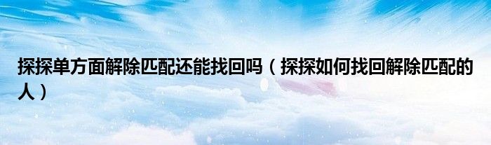 解答:1、探索取消匹配后,无法恢复,有可能再次相遇,但无法立即通过系统找到并恢复匹配关系。