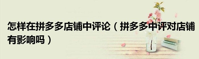 大家好,跳跳为你解答以上问题。怎样在拼多多店铺中评论,拼多多中评对店铺有影响吗这个问题很多人还不知道,现在让我们一起来看看吧!