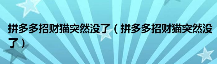 大家好,跳跳为你解答以上问题。拼多多招财猫突然没了,拼多多招财猫突然没了这个问题很多人还不知道,现在让我们一起来看看吧!