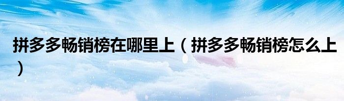 大家好,跳跳为你解答以上问题。拼多多畅销榜在哪里上,拼多多畅销榜怎么上这个问题很多人还不知道,现在让我们一起来看看吧!