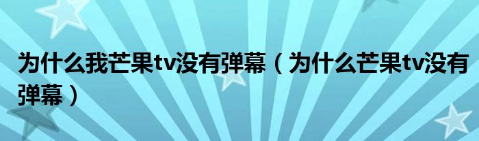 大家好,跳跳为你解答以上问题。为什么我芒果tv没有弹幕,为什么芒果tv没有弹幕这个问题很多人还不知道,现在让我们一起来看看吧!