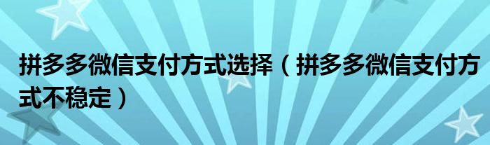 大家好,跳跳为你解答以上问题。拼多多微信支付方式选择,拼多多微信支付方式不稳定这个问题很多人还不知道,现在让我们一起来看看吧!