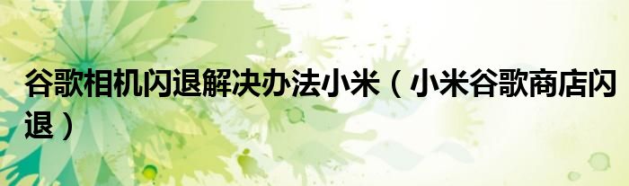 大家好,跳跳为你解答以上问题。谷歌相机闪退解决办法小米,小米谷歌商店闪退这个问题很多人还不知道,现在让我们一起来看看吧!
