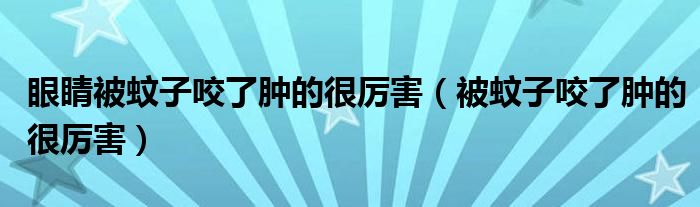 大家好,linda来为大家解答以上的问题。眼睛被蚊子咬了肿的很厉害,被蚊子咬了肿的很厉害很多人还不知道,现在让我们一起来看看吧!