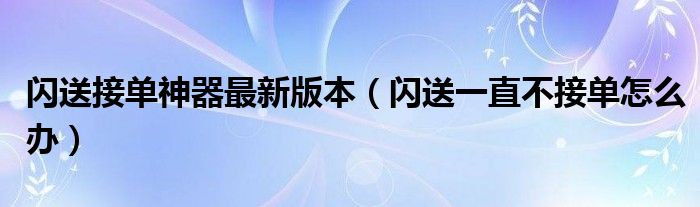 大家好,跳跳为你解答以上问题。闪送接单神器最新版本,闪送一直不接单怎么办这个问题很多人还不知道,现在让我们一起来看看吧!