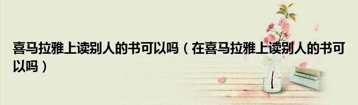 大家好,跳跳为你解答以上问题。喜马拉雅上读别人的书可以吗,在喜马拉雅上读别人的书可以吗这个问题很多人还不知道,现在让我们一起来看看吧!