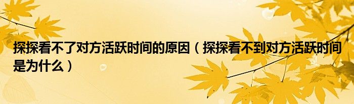 大家好,跳跳为你解答以上问题。探探看不了对方活跃时间的原因,探探看不到对方活跃时间是为什么这个问题很多人还不知道,现在让我们一起来看看吧!