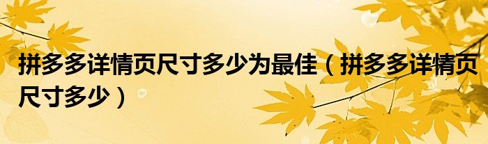 大家好,跳跳为你解答以上问题。拼多多详情页尺寸多少为最佳,拼多多详情页尺寸多少这个问题很多人还不知道,现在让我们一起来看看吧!