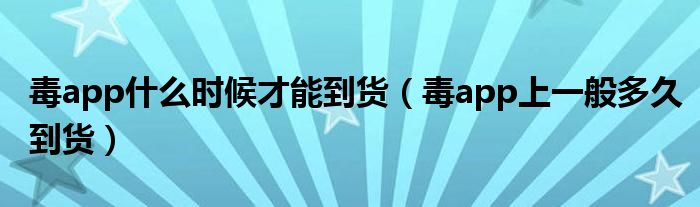 大家好,跳跳为你解答以上问题。毒app什么时候才能到货,毒app上一般多久到货这个问题很多人还不知道,现在让我们一起来看看吧!
