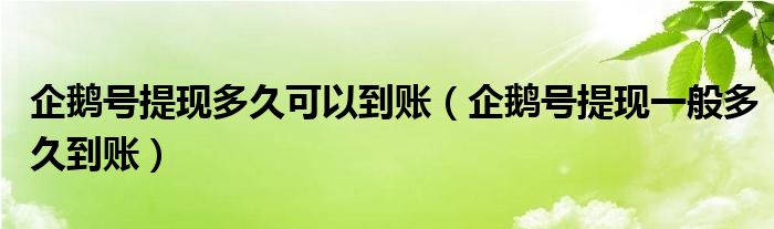 大家好,跳跳为你解答以上问题。企鹅号提现多久可以到账,企鹅号提现一般多久到账这个问题很多人还不知道,现在让我们一起来看看吧!