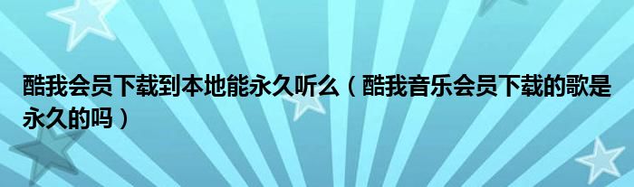 大家好,跳跳为你解答以上问题。酷我会员下载到本地能永久听么,酷我音乐会员下载的歌是永久的吗这个问题很多人还不知道,现在让我们一起来看看吧!