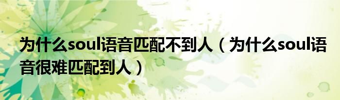 大家好,跳跳为你解答以上问题。为什么soul语音匹配不到人,为什么soul语音很难匹配到人这个问题很多人还不知道,现在让我们一起来看看吧!