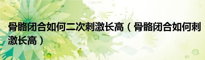 2、骨闭合只是不能自然生长,但可以通过一些练习和方法刺激骨骼和关节重新生长。