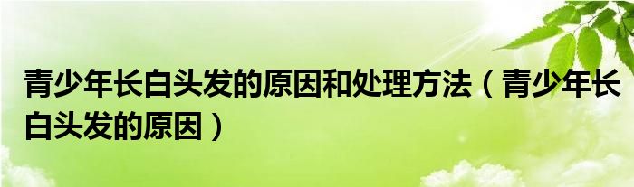 大家好,linda来为大家解答以上的问题。青少年长白头发的原因和处理方法,青少年长白头发的原因很多人还不知道,现在让我们一起来看看吧!