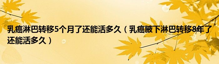 大家好,linda来为大家解答以上的问题。乳癌淋巴转移5个月了还能活多久,乳癌腋下淋巴转移8年了还能活多久很多人还不知道,现在让我们一起来看看吧!