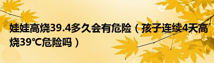 大家好,linda来为大家解答以上的问题。娃娃高烧39.4多久会有危险,孩子连续4天高烧39℃危险吗很多人还不知道,现在让我们一起来看看吧!