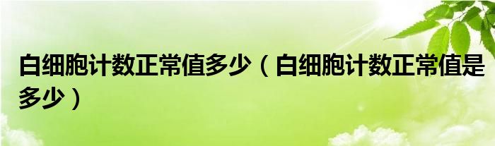 1、成人白细胞计数为(4-10)109/L;新生儿为(15-20)109/L;6个月至2岁的儿童为(11-12)10 ^ 9/l,白细胞总数的增减主要受中性粒细胞数量的影响,淋巴细胞数量的变化也会引起白细胞总数的变化。