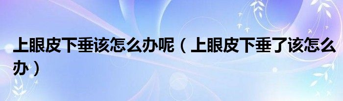 大家好,linda来为大家解答以上的问题。上眼皮下垂该怎么办呢,上眼皮下垂了该怎么办很多人还不知道,现在让我们一起来看看吧!